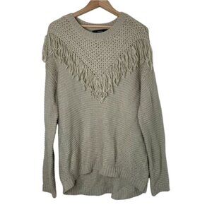 Forever 21 Chunky Knit Sweater Pullover beige Fringe detail Size Medium