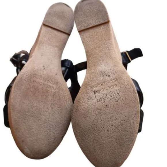 Forever 21 Cork Wedge Heel Black Vegan Platform Sandals Size 5