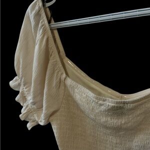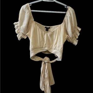 Adorable cream-coloured crop top. Puff sleeves, tie back detail. With silicon attached for anti slip. Size L.