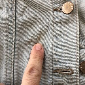 Stylish light blue denim jacket perfect for casual outings. Features a classic design with button closures and chest pockets.