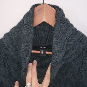 Forever 21 Dark Teal Cable Knit Turtleneck Sweater