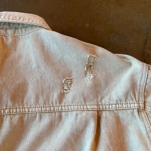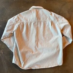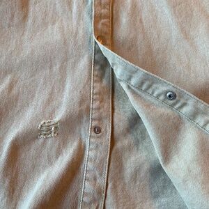 Forever 21 Denim Distressed Ripped Heavyweight Cotton Button Down Shirt
