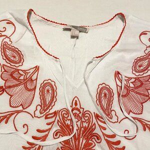 Forever 21 Embroidered Loose Fitting Semi Sheer Blouse Size Medium