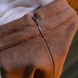 This faux suade mini skirt from Forever 21 features a sleek pencil silhouette and a stylish tie front detail, perfect for casual or work settings.