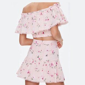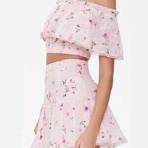 Forever 21 Floral Flounce Off Shoulder Embroidered Crop Top Skirt Coord Set b71