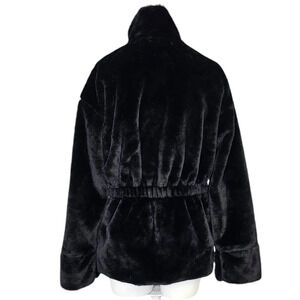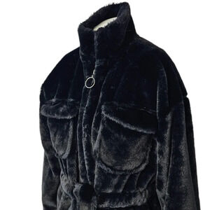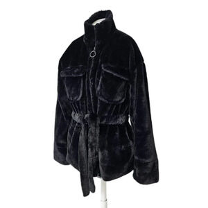 Forever 21 Fluffy Faux Fur Tie Waist Wide Sleeve Zip Up Jacket Black Size Small
