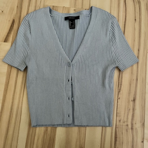 Forever 21 Gray Buttoned Ribbed Crop Top