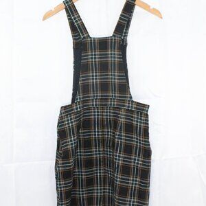 Forever 21 Green Black Yellow Plaid Medium Overalls Dress with Pockets