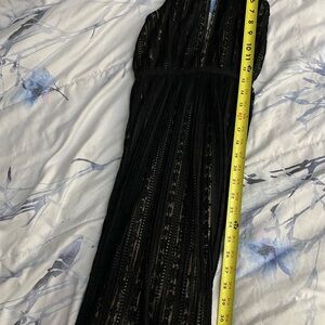 Crafted from intricate lace fabric, this dress is a testament to feminine charm. The tie closure ensures a comfortable and customizable fit, making it suitable for various occasions, from casual get-togethers to cocktail parties. With its versatile black hue, this dress in size S is a timeless piece that will keep you looking chic wherever you go.
