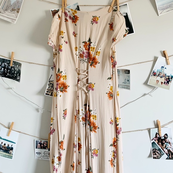 Airy summer dress with cute buttons going down the front and criss-cross lace pattern on the back!
