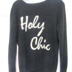 Black long sleeve sweater from Forever 21 with Holy Chic written on it in white flirty letters.