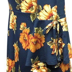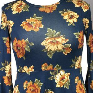 Short sleeve Indigo and Rust in colour. Features Floral design and Bell sleeve with a wrist tie. Very light and Airy. Has some stretch. 95% Rayon 5% Spandex/Elastane exclusive of elastic.