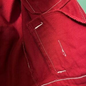 Perfect pop of color for summer. Deep red highlighted with white buttons and white stitching for a fresh summer look.