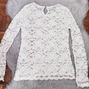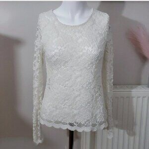 Forever 21 Lace Scalloped Long Sleeved top- white/cream- S