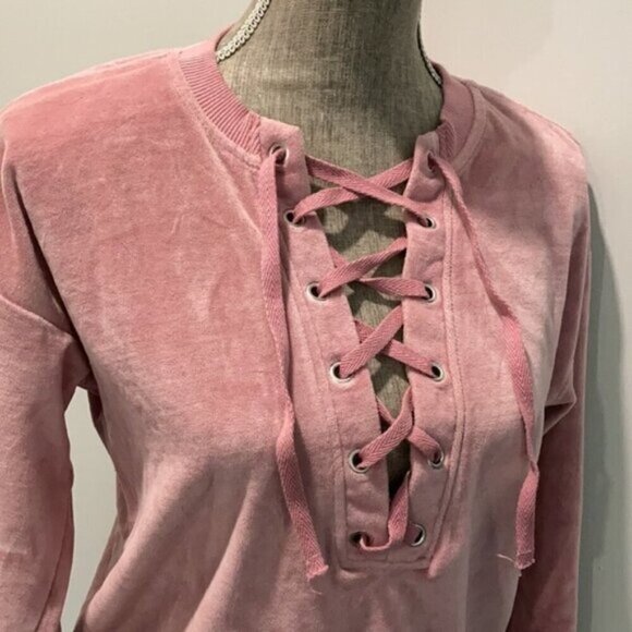 Forever 21 Lace-Up Pink Velour Sweatshirt