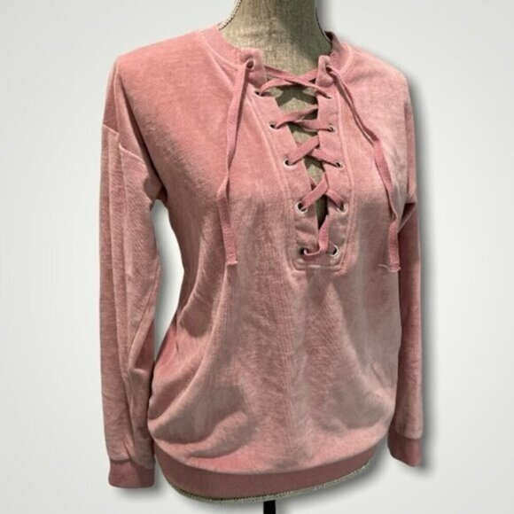 Forever 21 Women’s Lace-Up V-neck Pink Velour Sweatshirt