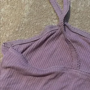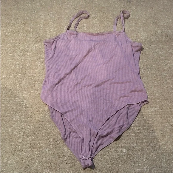 Stylish lilac bodysuit with ribbed texture. Features adjustable straps. Perfect for layering.