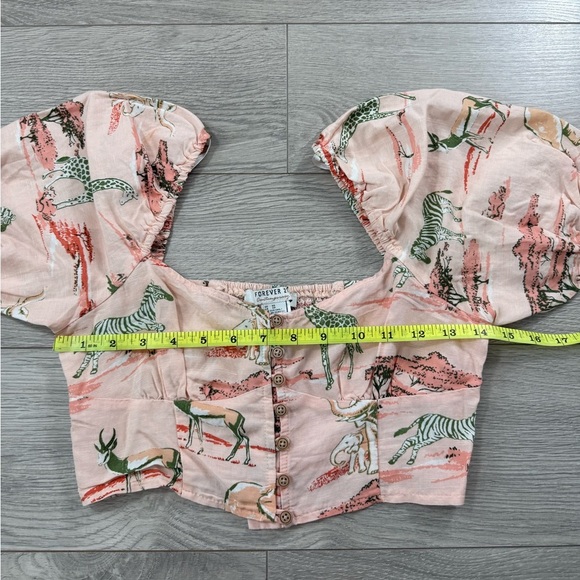 Forever 21 Linen Blend Safari Print Puff Sleeve Crop Top