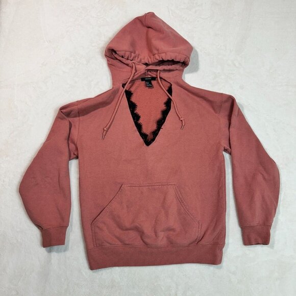 Forever 21 Low V-Neck Red Hoodie Pullover Women's Size S - Trendy Casual Wear
