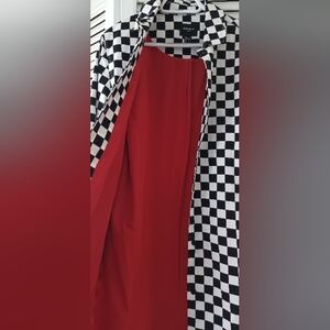 Forever 21 Men Checkered Black and White Trech Coat Red Lining Size Small
