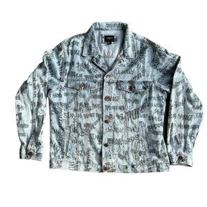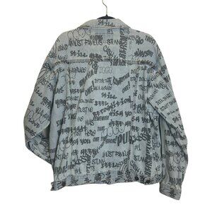 Forever 21 Mens Jean Jacket Graffiti Scribble Denim Cropped Hip Hop Faded Sz L