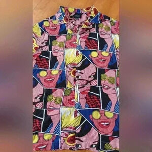 Forever 21 Men's Medium Cosmic Print Short-sleeved Button Shirt Multicolored