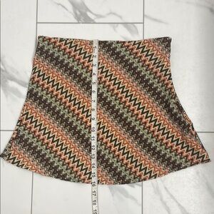 Elevate your style with this vibrant multicolor zigzag patterned skirt. Perfect for any occasion, this skirt combines comfort with a bold design. Add a splash of color to your wardrobe today. In EUC no flaws or stains.