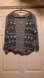 Chic boho blouse with intricate patterns. Features navy and white design. Ideal for casual outings.
