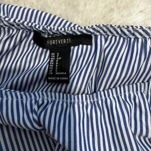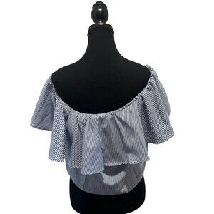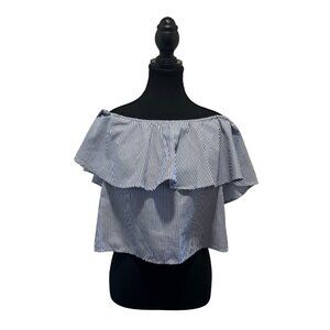Add a touch of charm to your wardrobe with this adorable Forever 21 off-the-shoulder crop blouse! Featuring a classic blue and white color combo, this lightweight, airy top is perfect for spring and summer.