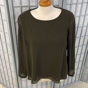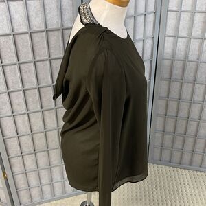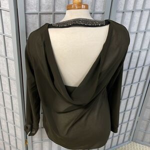 Forever 21 Olive Green Blouse with Cutout Back Beaded Detail, Size Small
