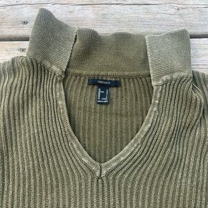 💙 Forever 21 Olive Green Ribbed Knit V-Neck Cropped