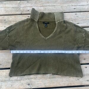 Step into fall with this stylish and cozy olive green ribbed knit sweater from Forever 21! This cropped design features a chic V-neckline and a comfortable, relaxed fit. Perfect for layering over a camisole or tank, or wearing on its own with high-waisted jeans, skirts, or shorts. The ribbed texture adds a touch of sophistication, making it a versatile piece for your everyday wardrobe.