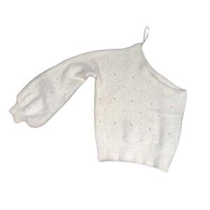 Forever 21 One-Shoulder White Fuzzy Sweater with Pearl Embellishments – Size XL