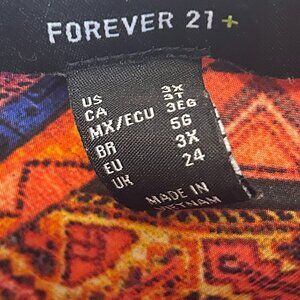 Bold and elegant Forever 21 slip dress in a striking orange abstract print, size 3X. A versatile maxi perfect for vacations, summer parties, or special occasions.