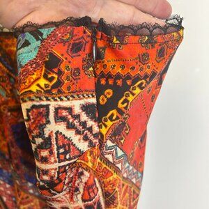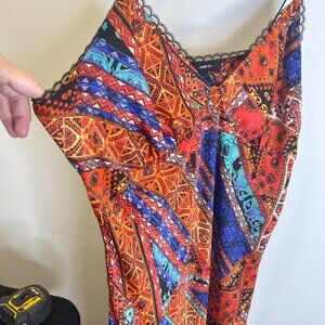 Forever 21 Orange Abstract Print Slip Dress Sz 3X Maxi Silky Lace Trim