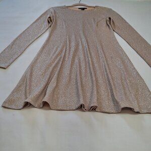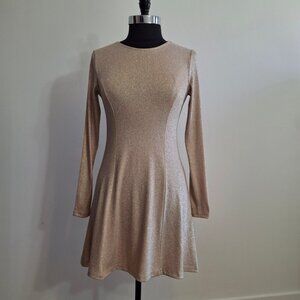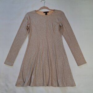 Forever 21 Peach Metallic Skater Dress Sz M Fit N Flare Long Sleeves Round Neck