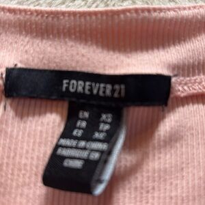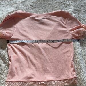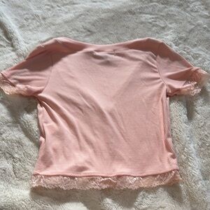 Channel all the soft girl and coquette vibes with this adorable Forever 21 blush pink baby tee! Featuring a flattering V-neckline, dainty lace trim on the sleeves and hem, and a cute button-down front—this cropped top is a Y2K essential. Perfect for pairing with low-rise jeans, mini skirts, or layered over a slip dress.