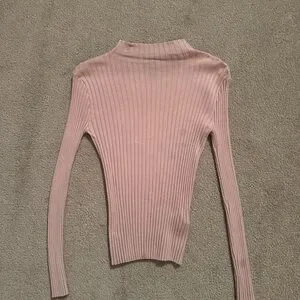 Chic ribbed knit top. Long sleeves. High neckline. Perfect for layering.