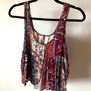 Forever 21 Red, Blue, White, Layered Peplum Lace Paisley Detailed Crop Tank
