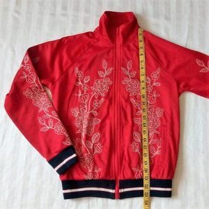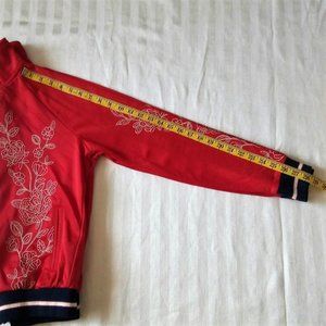 Forever 21 Red Satin Varsity Jacket with Gold Detailing