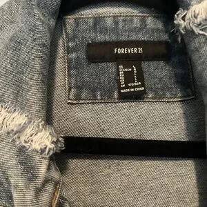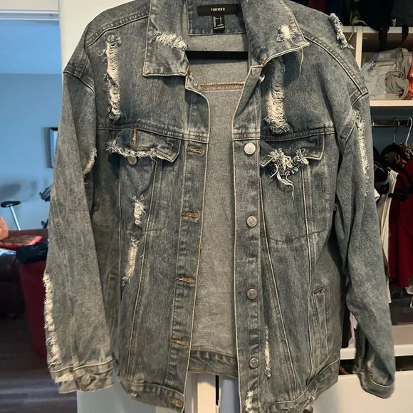 Edgy ripped design. Classic button-up style. Ideal for layering.