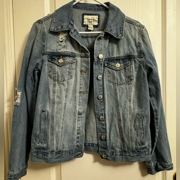 Ripped jeans jacket, barely worn. Contact for more info, flexible with price.