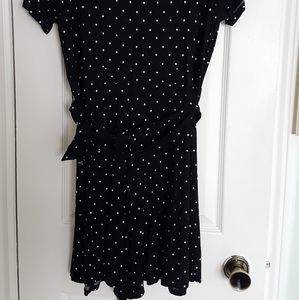 Short black polka dot romper. Short sleeves. Orginally from Forever 21. Size US 2X.
