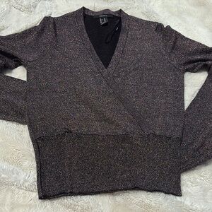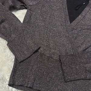 Bring laid-back luxe to your knit edit with this Forever 21 shimmer wrap too, Size XL, in good pre-loved condition. Featuring a deep V-neckline, blouson sleeves, and a pink-and-black shimmer, this piece delivers snuggle style with a touch of flattering glam.