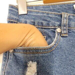 Forever 21 Skinny Denim Blue Mom Jeans Distressed Destroyed High Waist Classic 5-Pocket Stretch
