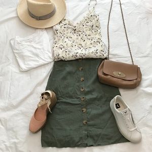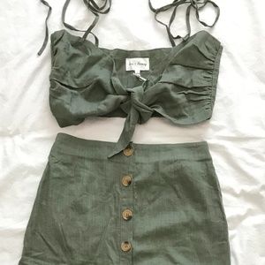 Forever 21 linen-blend crop top and skirt set - Size S - Olive Green.