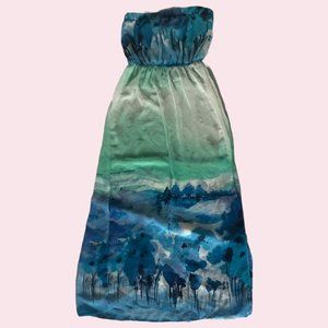 You’ll be a walking work of art in this gloriously vibrant midi dress. There is a pastoral print and beautiful watercolour palette. This can also be used as a maternity dress, refreshingly fun and flirty. Fully lined in rich jersey, the landscape print dress looks just as amazing on a precious pre-baby holiday as it does at home for summer parties. Dress up with metallic heels or your favourite sandals.