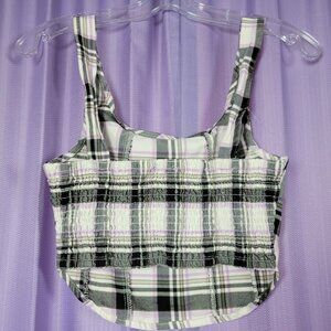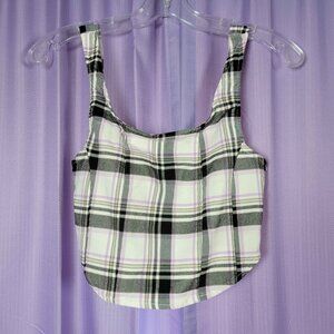 Super cute purple plaid crop top with a rounded hem