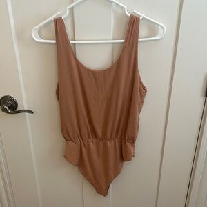 Stylish tan / peach bodysuit. Perfect for layering or wearing alone.