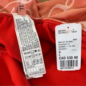 forever 21 swimwear, coral swimsuit, one piece bathing suit, high leg swimsuit, true love print, beachwear, vacation swim, resort style, new with tags, women's size L swimsuit, trendy swimwear, summer style, festival pool party, glossy swimsuit
